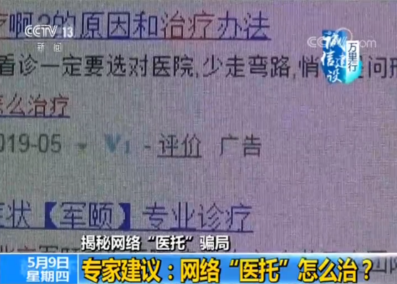 中國政法大學傳播法研究中心副主任 朱巍:現在的這種所謂的醫(yī)托,這個都是不是以廣告形式(表現)的,至少不是以傳統(tǒng)廣告形式的,比如說點對點的這種qq溝通,這種虛假的陳述性的東西,目前沒有辦法把它定義成廣告。所以很多的違法者就打著擦邊球,用這種方式去介入做這種互聯網醫(yī)療廣告。