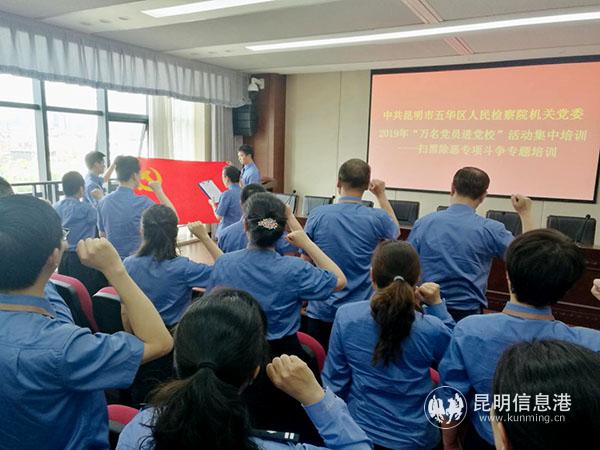 昆明信息港訊 近日,五華區(qū)檢察院2019年度“萬名黨員進(jìn)黨校”活動(dòng)正式啟動(dòng)。院機(jī)關(guān)黨委書記栗宏作動(dòng)員講話,院黨組書記、檢察長(zhǎng)王松柏以掃黑除惡為主題講黨課,對(duì)全院黨員開展掃黑除惡專項(xiàng)斗爭(zhēng)專題培訓(xùn),并舉行掃黑除惡應(yīng)知應(yīng)會(huì)考試。