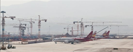 5月10日,昆明長水國際機(jī)場(chǎng)S1衛(wèi)星廳航站樓建設(shè)工地一派繁忙景象。S1衛(wèi)星廳航站樓是昆明長水國際機(jī)場(chǎng)改擴(kuò)建工程的重要組成部分,其功能為服務(wù)于純國內(nèi)旅客的空側(cè)衛(wèi)星廳,項(xiàng)目總建筑面積12.93萬平方米,建成后可滿足長水機(jī)場(chǎng)年旅客吞吐量5300萬人次的要求。(云南日?qǐng)?bào) 記者楊崢/攝)