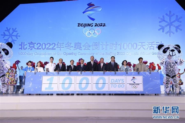 11名代表推動(dòng)拉桿,“1000”字樣躍然于塔身屏幕之上。2022年北京冬奧會(huì)迎來倒計(jì)時(shí)一千天!冬奧會(huì)的腳步近了,更近了!
