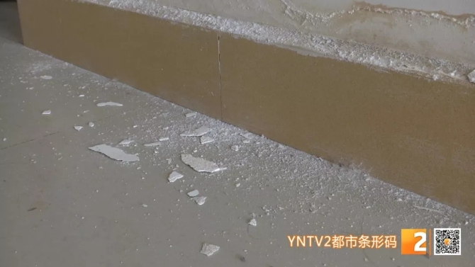 物業(yè)工作人員:“驗的時候發(fā)現漏水了,我們已經上報給公租房公司了,還有就是地板條脫落,脫落原因是墻體水管漏水,地板被水泡了就會翹,還有衛(wèi)生間頂也是這樣。”