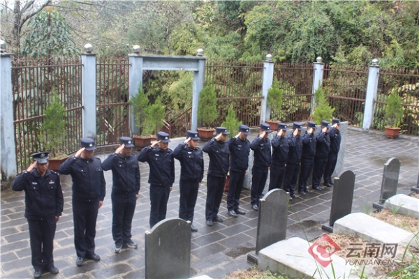 獨龍江邊境派出所隊員向犧牲的隊友致敬。獨龍江邊境派出所供圖