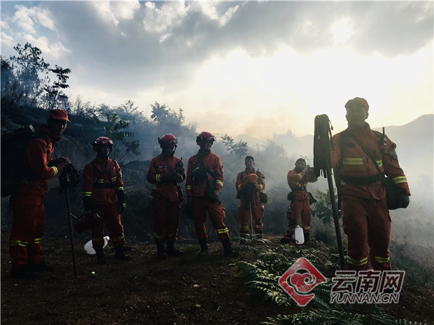 消防隊(duì)員在云南永平山火現(xiàn)場。供圖