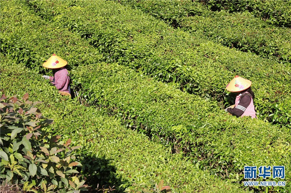 初夏時(shí)節(jié),云南省臨滄市鳳慶縣德思里鄉(xiāng)夏茶采摘進(jìn)入旺季。茶葉種植基地里,茶戶在茶園里采摘滇紅茶,與層層疊疊的滿目翠綠交相輝映,構(gòu)成一幅絢麗多彩的鄉(xiāng)村畫卷。鳳慶縣素有“世界滇紅茶鄉(xiāng)”之稱,是馳名中外“滇紅茶”的故鄉(xiāng)。(新華網(wǎng)發(fā) 王俞/攝)