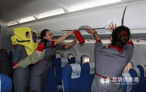 昆明信息港訊 記者上官艷君 為進(jìn)一步提升公司應(yīng)急處置能力,提高各部門對(duì)應(yīng)急預(yù)案、執(zhí)行程序的了解和實(shí)操技能,云南紅土航空股份有限公司(以下簡(jiǎn)稱“紅航”)日前開展了機(jī)上鋰電池失火應(yīng)急演練。