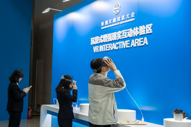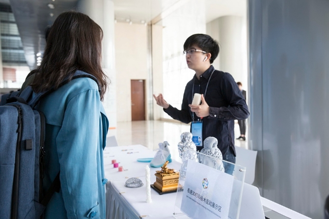 亞洲文明對(duì)話(huà)大會(huì)新聞中心開(kāi)設(shè)有中國(guó)非物質(zhì)文化遺產(chǎn)互動(dòng)區(qū)、AR博物館、VR沉浸式互動(dòng)體驗(yàn)區(qū)、極速3D打印技術(shù)互動(dòng)展示區(qū)等四大互動(dòng)體驗(yàn)區(qū)。其中非遺互動(dòng)區(qū)專(zhuān)門(mén)設(shè)置了四組工藝制作展示,記者可以親身體驗(yàn)畫(huà)國(guó)畫(huà)、攢玉石宮花、兔爺彩繪、軟陶工藝制作等。此外,據(jù)介紹,極速3D打印技術(shù)是中國(guó)自主研發(fā)的最新成果,其打印速度比傳統(tǒng)的3D打印技術(shù)快百倍,也就是說(shuō)如果傳統(tǒng)3D打印需要耗時(shí)100分鐘,在這里只需要1分鐘。