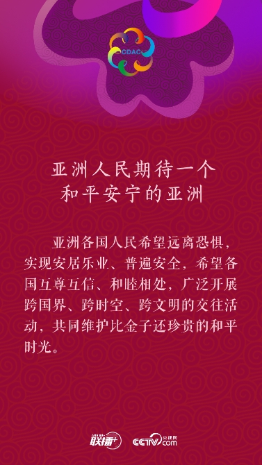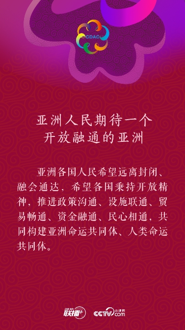 此次,習(xí)近平主席在開(kāi)幕式上發(fā)表主旨演講,提出了亞洲人民對(duì)美好生活的三個(gè)期待和共建亞洲命運(yùn)共同體、人類(lèi)命運(yùn)共同體的四點(diǎn)主張。這些生動(dòng)話語(yǔ)闡明了對(duì)待不同文明應(yīng)有的態(tài)度和原則,解答了人類(lèi)文明何去何從的“時(shí)代之問(wèn)”,架構(gòu)起溝通各國(guó)人民民心相通的橋梁,充分展現(xiàn)了東方智慧和大國(guó)胸懷。央視網(wǎng)梳理其中要點(diǎn),以饗讀者。