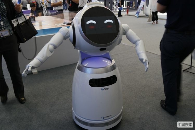 圖為高科技企業(yè)優(yōu)必選(UBTECH)展示的智能安保機器人克魯澤。