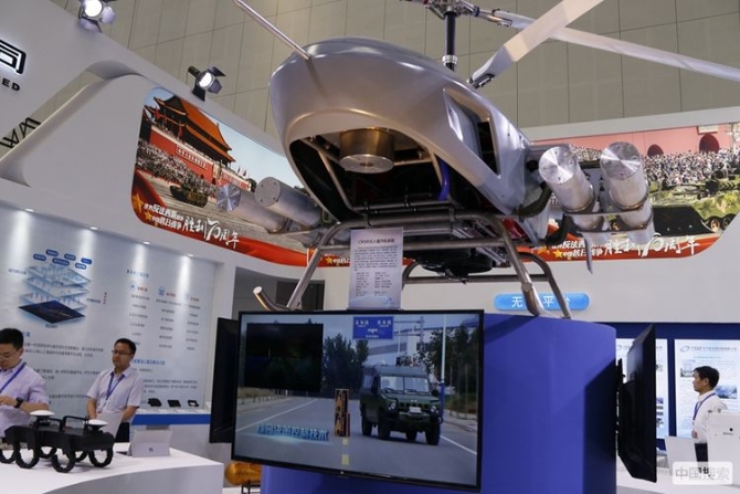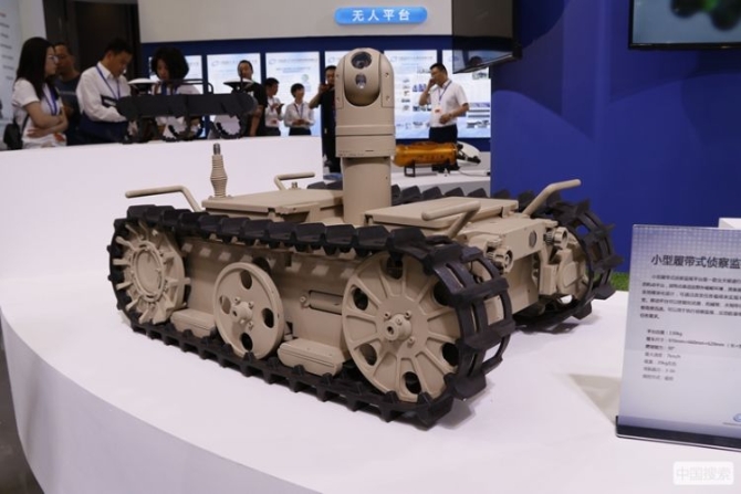 中國兵器工業(yè)集團有限公司展出的小型履帶式監(jiān)視偵查平臺。