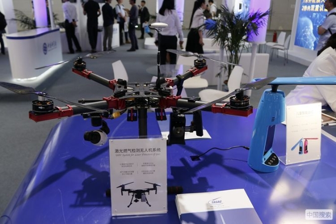 天津中科飛航技術(shù)有限公司展出的激光燃氣檢測無人機系統(tǒng)。
