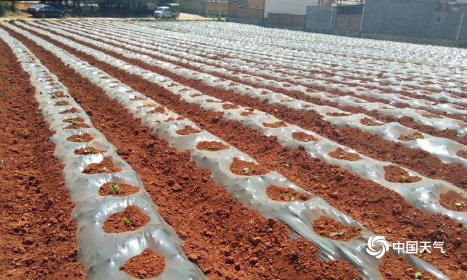 圖為曲靖市沾益區(qū)已達(dá)重旱,大坡鄉(xiāng)烤煙地薄膜也難鎖住極少的水份。(圖/張樸麗)