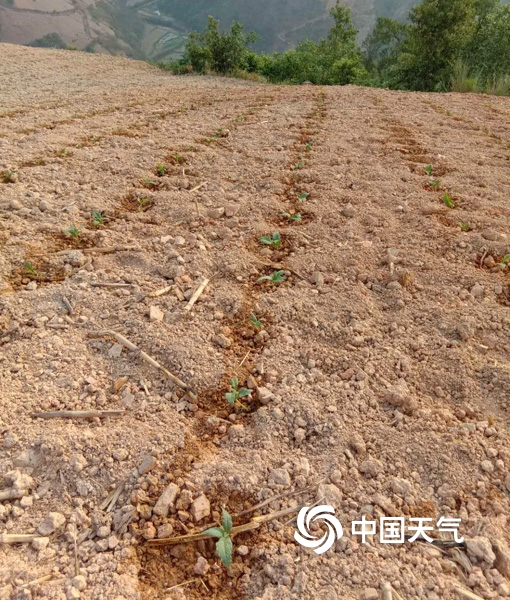 云南省氣候中心綜合監(jiān)測顯示,目前滇西北大部、滇中及以南大部地區(qū)達(dá)到氣象干旱重旱等級,其中西雙版納、普洱、昆明、曲靖等地的部分地區(qū)出現(xiàn)特旱。預(yù)計未來7天上述地區(qū)仍以晴熱天氣為主,氣象干旱將持續(xù)或發(fā)展。圖為曲靖市沾益區(qū)已達(dá)重旱,玉米苗幾乎沒有水的供給,葉片已經(jīng)開始萎縮。(文/雷波 圖/張樸麗)