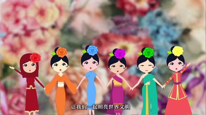 咦,是誰在聊天?原來是來自亞洲的六朵小花。多彩的泰國,浪漫的印度,溫柔的日本,好客的哈薩克斯坦,活潑的伊朗,包容的中國。