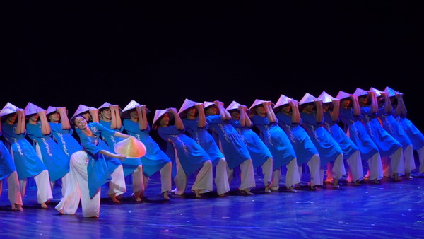 大幕拉開(kāi),蔚藍(lán)色的燈光打下來(lái),一群“海的女兒”頭戴斗笠身著藍(lán)衣踏浪而來(lái),揭開(kāi)了群星獎(jiǎng)為期4天的比賽環(huán)節(jié)。第一天,舞蹈類的21個(gè)節(jié)目分兩場(chǎng)比賽進(jìn)行。