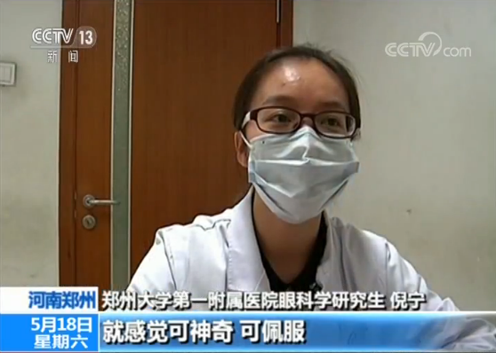 鄭州大學(xué)第一附屬醫(yī)院眼科學(xué)研究生 倪寧:張教授都做過腎癌手術(shù)啊,摘過一個(gè)腎,就感覺可神奇,可佩服,好像有一種和平常人很不一樣的精神在他身體里。