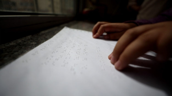 20歲的王丹用盲文寫作