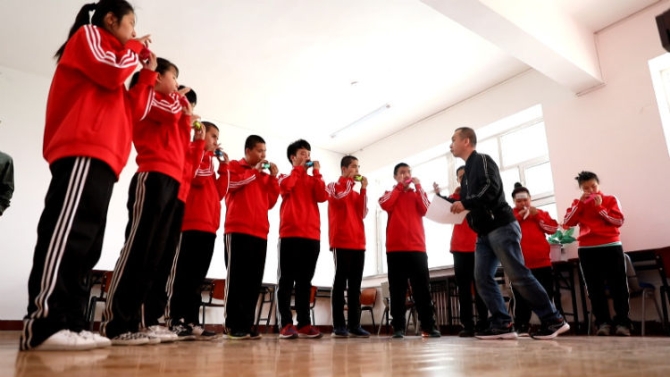 他免費(fèi)教授盲童吹奏技法