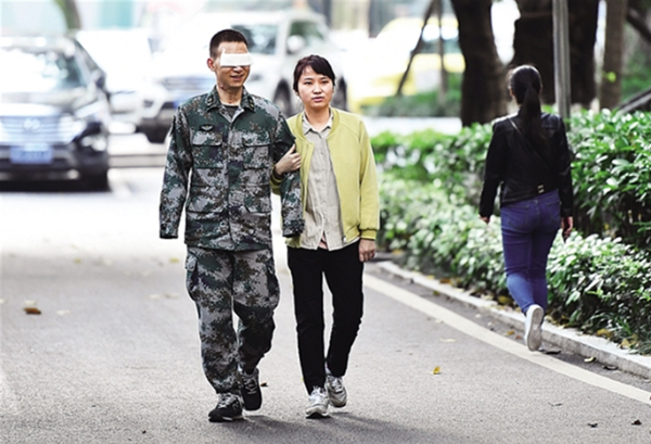 在陸軍軍醫(yī)大學,杜富國與妻子王靜一起散步。