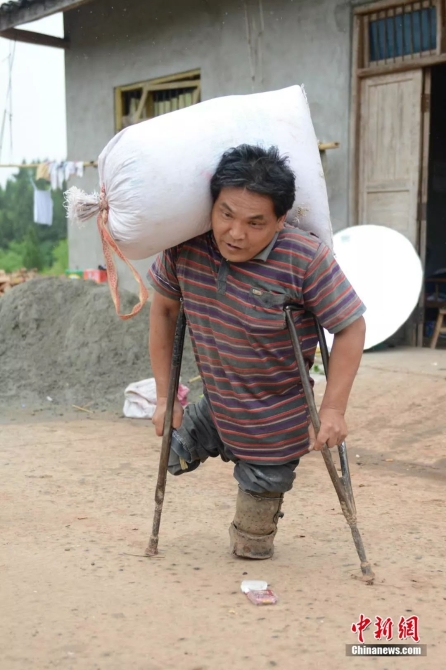“1996年,我決定一定要自立更生,解決溫飽問(wèn)題?!庇谑?,李杰文找來(lái)汽車輪胎皮,為自己做了一雙靴子,再依靠鐵拐支持,掌握好技巧后,挑水、扛物、犁田、耕地都得心應(yīng)手。