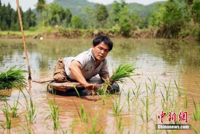 但是,栽秧還是難住了李杰文:田里有水,且地里泥土稀軟,李杰文寸步難行,實(shí)在無(wú)法下田。后來(lái),他靈機(jī)一動(dòng),想到了一個(gè)絕妙的辦法?!拔蚁劝蜒砻缛鲈谔锢?,然后讓一個(gè)充滿氣的汽車內(nèi)胎浮在水面上,再在輪胎上面放上木板,栽秧的時(shí)候就坐在輪胎里?!?/span>