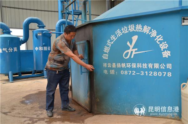 “目前,在云南做小型生活垃圾熱解處理的有很多,但采用高溫熱解處理的就只有我們這一個產品?!睋P帆環(huán)保的技術負責人熊锎盛自豪地介紹說,公司采用了先進的“自燃式生活垃圾熱解凈化”的處理方式,取得了很好的效果。具體而言,就是利用有機物的熱不穩(wěn)定性,在無氧或 缺 氧 條 件下受熱分解的過程系統利用生活垃圾自身3500—5500千焦/公斤左右的熱值進行自燃高溫熱解,不添加助燃劑,無明火、無飛灰。熱 解 溫 度 850℃ —1200℃,垃圾減量達 97%,3%剩余灰渣衛(wèi)生填埋或鋪設路面。煙氣經過爐內上段低溫垃圾過濾層降溫過濾(≤70℃)并經多級凈化處理達標排放。循環(huán)廢水、滲淋液及沉淀物返入熱解爐進行垃圾濕度調節(jié),最終進入熱解處理,達到污水零排放?!毙茱词⒔榻B,熱解和焚燒直觀的比較大的區(qū)別在于熱解是一個無明火吸熱的過程,而焚燒則是一個明火放熱的過程。焚燒需要大量的氧氣,如果燃燒不完整的話就會產生二氧化碳,并且產生飛灰。但自燃式生活垃圾熱解凈化系統卻能做到層層過濾,基本在高溫層完全抑制達顆粒物和飛灰。尤其值得一提的是,最后剩下的一點灰渣,也會物盡其用。在經過簡單的篩選之后,粗灰渣可以用來鋪設路面,而細灰渣則可用來當作景觀植物的有機肥。