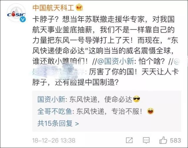 @中國航天科工:撤走專家釜底抽薪,我們也能靠自己打響“東風(fēng)快遞”的名號(hào)!