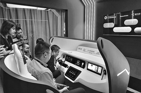 在昆明滇池國際會展中心,參展人員體驗車載及家用智能產(chǎn)品。 新華社記者 秦晴 攝