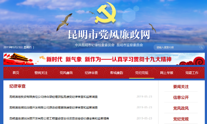 昆明信息港訊 據昆明市監(jiān)察委員會消息,昆明滇池湖泊治理開發(fā)有限公司原總經理葛銳、工程建設部主任湯昆榮及昆明滇池投資有限責任公司綜合部經理郭振昆涉嫌嚴重違紀違法,目前正接受紀律審查和監(jiān)察調查。