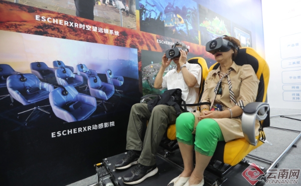 市民在云南國際智慧旅游展覽區(qū)體驗軌道vr