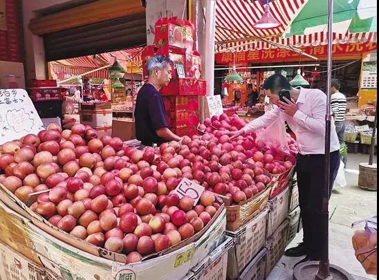 走進篆新農(nóng)貿(mào)市場,不論是昭通蘋果,還是山東富士,國產(chǎn)蘋果的價格都很貴,最便宜的十五六元,品質(zhì)好些的20元上下,這樣一算,還不如買更貴一些的進口蘋果,起碼還是“洋貨”。