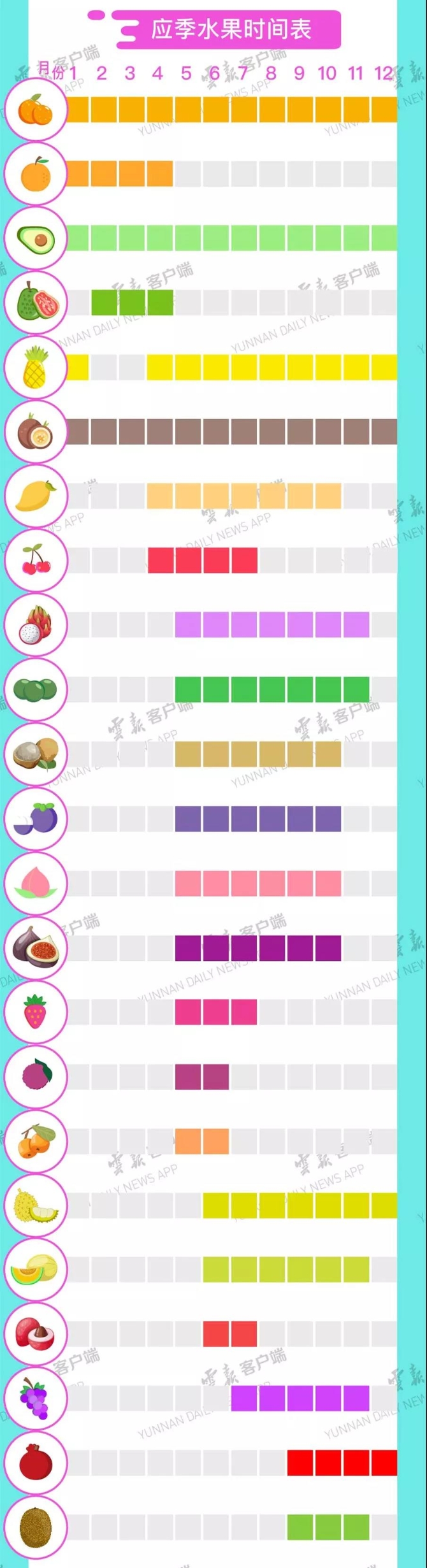 (方框中有顏色的代表該月份有對應(yīng)水果上市哦)