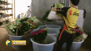 鄔紅華訂購的1200支玫瑰正浸泡在一種叫可利鮮的保鮮劑里,它為鮮花提供養(yǎng)分,也能防止鮮花在運(yùn)輸途中過早開放。