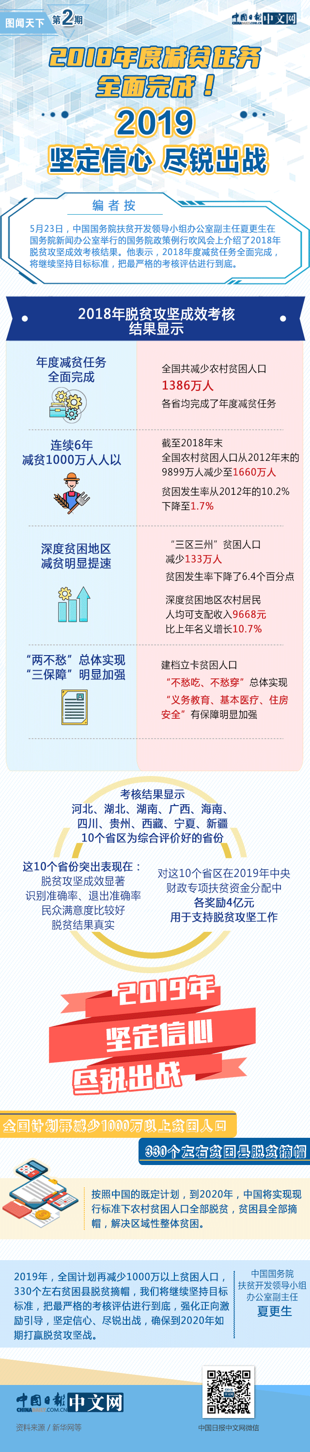 5月23日,中國國務(wù)院扶貧開發(fā)領(lǐng)導(dǎo)小組辦公室副主任夏更生在國務(wù)院新聞辦公室舉行的國務(wù)院政策例行吹風(fēng)會(huì)上公布2018年脫貧攻堅(jiān)成效考核結(jié)果時(shí)表示,2018年度減貧任務(wù)全面完成,將繼續(xù)堅(jiān)持目標(biāo)標(biāo)準(zhǔn),把最嚴(yán)格的考核評(píng)估進(jìn)行到底。(中國日?qǐng)?bào)網(wǎng))