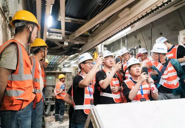 △小伙伴們走進中鐵裝備施工的隧道內(nèi),近距離觀看正在施工中的盾構(gòu)機