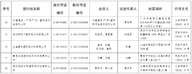 5月27日,文化和旅游部發(fā)布《關(guān)于許可旅行社經(jīng)營出境游業(yè)務(wù)的公告》。公告顯示,按照《旅行社條例》和《中國公民出國旅游管理辦法》,許可以下18家旅行社經(jīng)營出境游業(yè)務(wù): ?近年來,隨著出境游市場的發(fā)展,旅游相關(guān)單位不斷加強審批出境游業(yè)務(wù)。對旅游市場秩序的規(guī)范、監(jiān)管力度也不斷提升。數(shù)據(jù)顯示,2016年,全國共吊銷61家旅行社經(jīng)營許可證,2018年,文旅部在為期3個月的全國旅游市場秩序整治中吊銷了34家旅行社經(jīng)營資質(zhì)。今年,文旅部已發(fā)布過3次關(guān)于取消旅行社經(jīng)營出境游和旅行社業(yè)務(wù)的公告,共取消了30家旅行社的出境游業(yè)務(wù)經(jīng)營權(quán)、注銷了11家旅行社的旅行社業(yè)務(wù)。(央廣網(wǎng) 記者梁晨)
