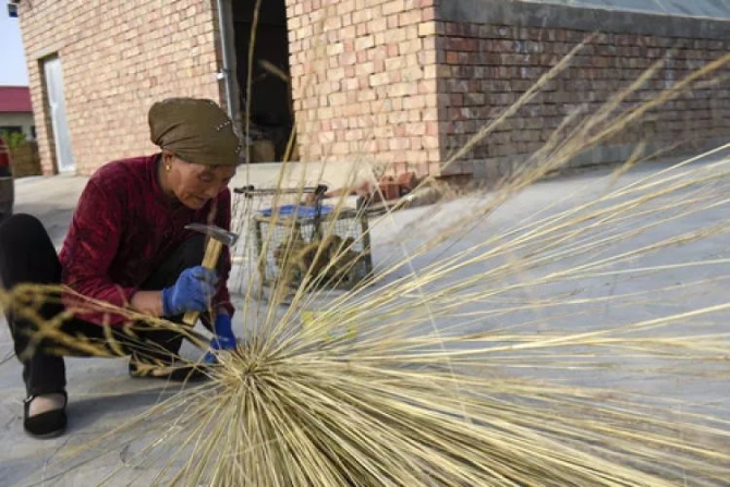 “女人干扎掃帚的活,特別苦?!饼堅创宕迕駰罱鸹ㄕf,扎掃帚看著簡單,其實是講究技巧和經(jīng)驗的辛苦活,得有力氣才行,這活大多都是男人干。