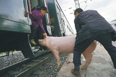 ?記者走了一圈發(fā)現,“慢火車”上不僅有山羊,還有被套在編織袋里的白鵝,裝在紙殼箱里的雞苗等等。在聯合鄉(xiāng)站,幾名乘客抬了一頭豬上來。