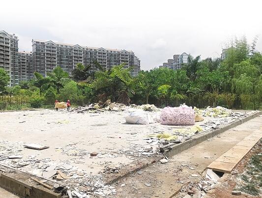 昨日,當(dāng)記者再次來到世紀(jì)城小區(qū)如意公園走訪時發(fā)現(xiàn),這個違法建筑終于被拆除了。記者在現(xiàn)場看到,該建筑墻面和房頂已被拆除,僅剩下還鋪設(shè)有地磚的建筑水泥地面還在,上面雜亂地堆放有不少建筑垃圾。拆除現(xiàn)場還停放著一臺挖機,周圍的綠化帶一片狼藉。在場的幾位工人表示,自己只是來做工的,并不了解其他情況。
