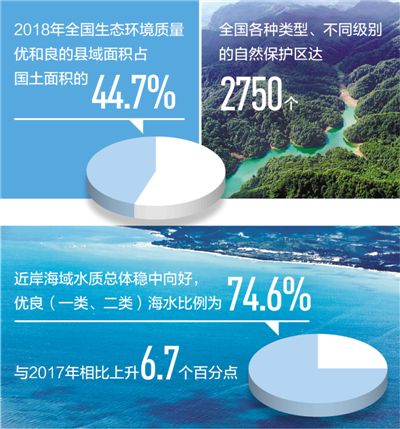 會(huì)上,生態(tài)環(huán)境部生態(tài)環(huán)境監(jiān)測(cè)司司長(zhǎng)柏仇勇表示,2018年全國(guó)生態(tài)環(huán)境質(zhì)量持續(xù)改善,大氣和水環(huán)境質(zhì)量進(jìn)一步改善,土壤環(huán)境風(fēng)險(xiǎn)有效管控,生態(tài)系統(tǒng)格局整體穩(wěn)定,主要污染物排放總量和單位國(guó)內(nèi)生產(chǎn)總值二氧化碳排放量進(jìn)一步下降,完成生態(tài)環(huán)境保護(hù)年度目標(biāo)任務(wù);海洋生態(tài)環(huán)境狀況整體穩(wěn)中向好,海水環(huán)境質(zhì)量總體有所改善。