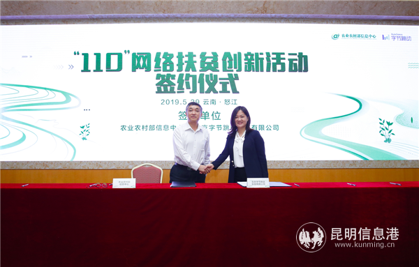 昆明信息港訊 記者勞學麗 5月29日,農(nóng)業(yè)農(nóng)村部信息中心和字節(jié)跳動在云南怒江宣布將聯(lián)合開展“110”網(wǎng)絡(luò)扶貧創(chuàng)新活動,計劃幫助全國10個深度貧困縣開展扶貧工作,輻射帶動100個貧困縣,通過今日頭條、抖音等信息平臺宣傳打造縣域農(nóng)業(yè)品牌,推動貧困地區(qū)縣域農(nóng)業(yè)農(nóng)村經(jīng)濟發(fā)展。