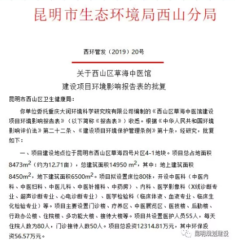 早在今年5月17日和5月22日,西山區(qū)政府曾發(fā)布了《西山區(qū)草海中醫(yī)館建設(shè)項(xiàng)目環(huán)境影響報(bào)告表》和《西環(huán)管發(fā)〔2019〕20號(hào)關(guān)于西山區(qū)草海中醫(yī)館建設(shè)項(xiàng)目環(huán)境影響報(bào)告表的批復(fù)》,就項(xiàng)目建設(shè)的一些基本情況進(jìn)行了說明。