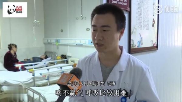 溫江區(qū)人民醫(yī)院醫(yī)生范濤表示,“(病人)來的時(shí)候胸悶氣緊,喘不贏氣,呼吸比較困難,病情還是比較重的,如果沒有及時(shí)送醫(yī),還是比較危險(xiǎn)的。”
