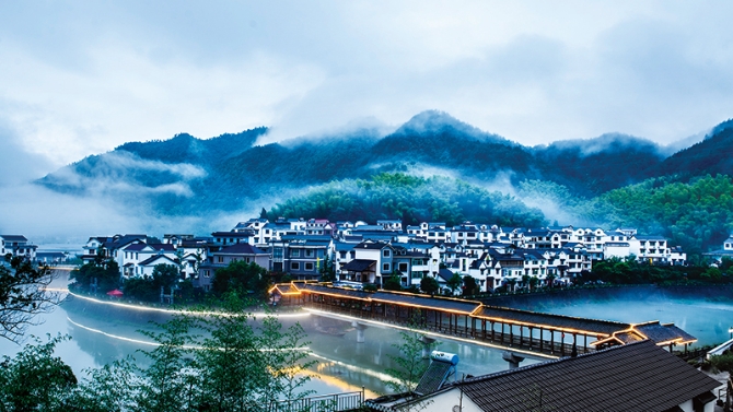 浙江省淳安縣下姜村是習近平總書記在浙江工作期間的基層聯(lián)系點,他曾多次來這里指導工作。在習近平總書記的親自指導下,下姜村走出了一條從“臟亂差”到“綠富美”的鄉(xiāng)村振興之路。圖為下姜村清晨雨后。 錢德星/攝