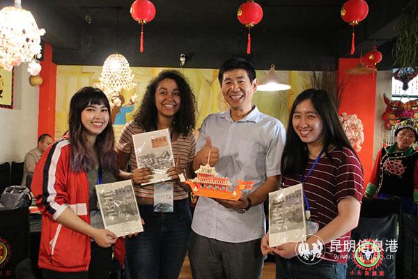 最后,拼龍舟冠軍由第二小組3名女生獲得,昆明文學(xué)藝術(shù)研究院辦公室主任王金村為其準(zhǔn)備了《昆明文藝》雜志,向外國(guó)友人介紹昆明的人文風(fēng)情和歷史文化。