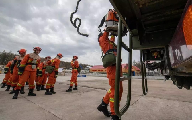 “接到上級指示,管護地區(qū)發(fā)生森林火災,緊急集合!”5月8日,奇乾中隊舉行例行滅火實戰(zhàn)演習。隨著中隊長王德朋一聲令下,全體消防員從接到指令到全部人員、設備裝載出發(fā),用時不足3分鐘。“有火打火,沒火訓練,這是為了不斷提高隊員快速反應能力和處置能力,以應對隨時可能發(fā)生的森林火災。”王德朋說。