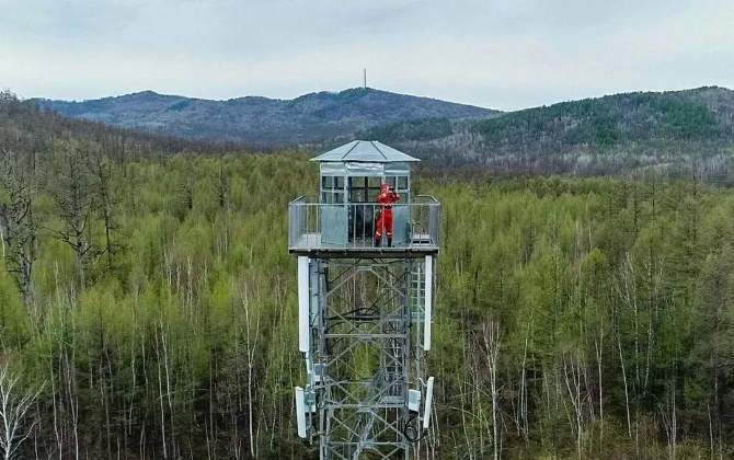 △5月11日,奇乾中隊消防員在管護區(qū)瞭望塔上進行防火瞭望。