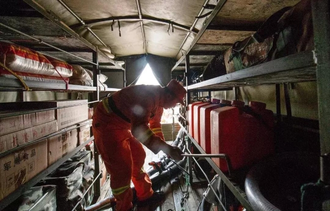 △防火期內(nèi),奇乾中隊消防員每天都要嚴格按照規(guī)定物品數(shù)量、種類和擺放順序檢查車輛。