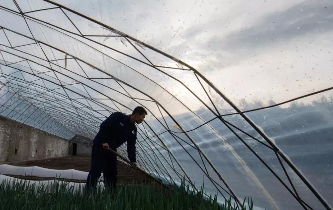 △5月11日,消防員在營房邊的蔬菜大棚里種菜。奇乾中隊用4年時間在凍土層上開出一小塊菜地。