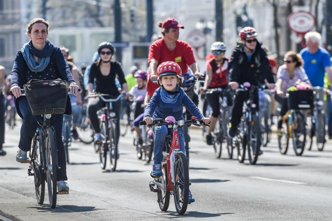 ↑這是2019年3月31日,在奧地利維也納,自行車愛(ài)好者參加2019自行車騎行嘉年華活動(dòng)。新華社記者郭晨攝