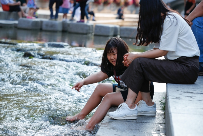 ↑這是2019年6月2日,在韓國(guó)首爾,一名女孩在清溪川中戲水。清溪川曾遭受嚴(yán)重污染,一度成為“臭水溝”,后又被蓋入地下,建立高架橋。首爾市從2002年7月起啟動(dòng)清溪川復(fù)原工程,經(jīng)過(guò)3年多的建設(shè),清溪川重新出現(xiàn)。據(jù)稱,重生的清溪川還可以調(diào)節(jié)首爾的氣溫,是一條名副其實(shí)的自然生態(tài)河流。新華社記者王婧嬙攝